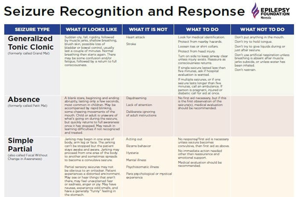 Seizure Recognition and Response Chart – Epilepsy Foundation of …